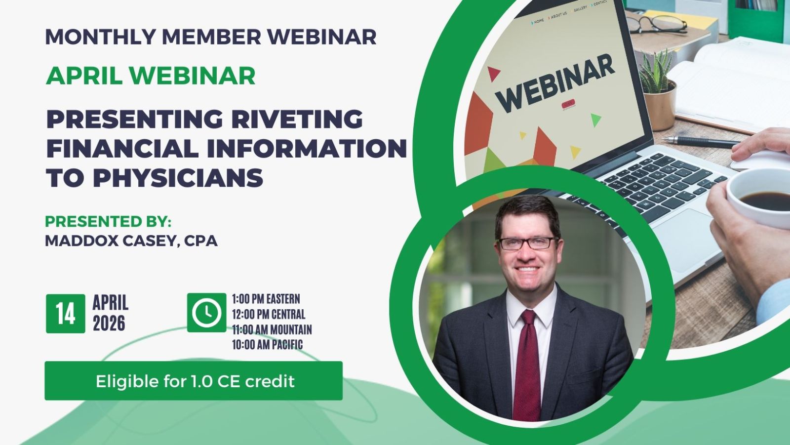 Monthly webinars provide members and their staff, education from the comfort of the office.Learn from industry experts on healthcare's hottest topics and earn CE credit. Webinars are 60-90 minutes long, offered live or on demand and live sessions include Q & A with the speakers.